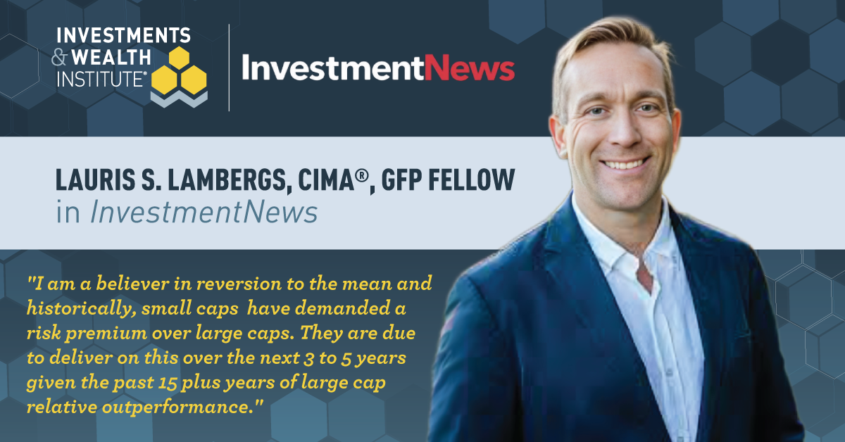 April 29, 2026 - Denver, CO — Lauris Lambergs, Vice Chair of Professional Development for the Investments & Wealth Institute, was recently featured in an InvestmentNews article examining whether wealth managers should maintain their small-cap allocations following a period of notable outperformance relative to large-cap stocks.