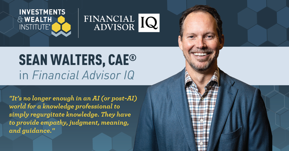 April 24, 2026 - Denver, CO — Sean Walters, CEO of the Investments & Wealth Institute, was recently featured in a Financial Advisor IQ article examining the growing role of financial advisors as family therapists and emotional guides—particularly when clients face estate planning decisions triggered by illness or end-of-life planning.