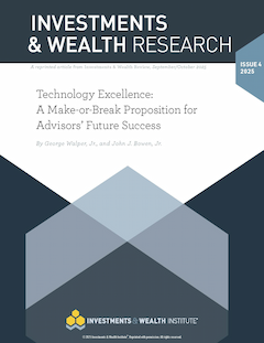 Investments & Wealth Research provides custom research describing demographic and best practice information about Institute members and how they deliver investment consulting and wealth management services. Investments & Wealth Research is distributed as a supplement to Investments & Wealth Monitor, IWI’s bimonthly educational publication.